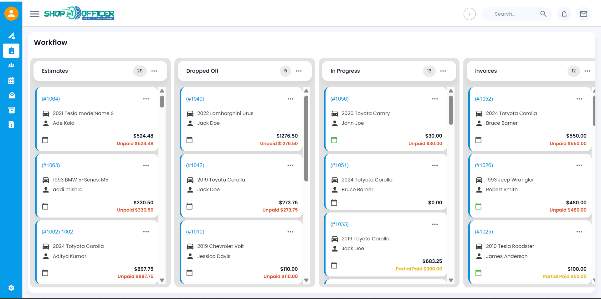 Fed up with questions, constant phone calls, and back & forth with technicians? Workflow Management is the solution for you. With Shop Officer, you can manage operations & track progression seamlessly in real time.